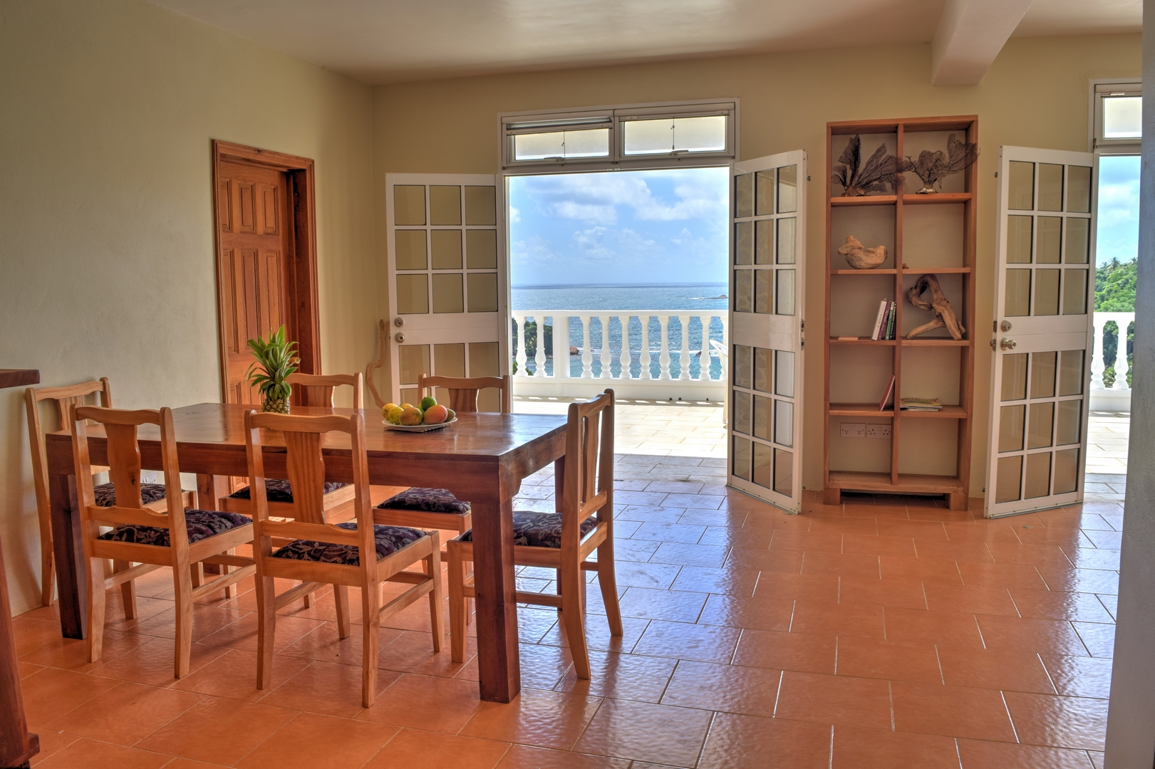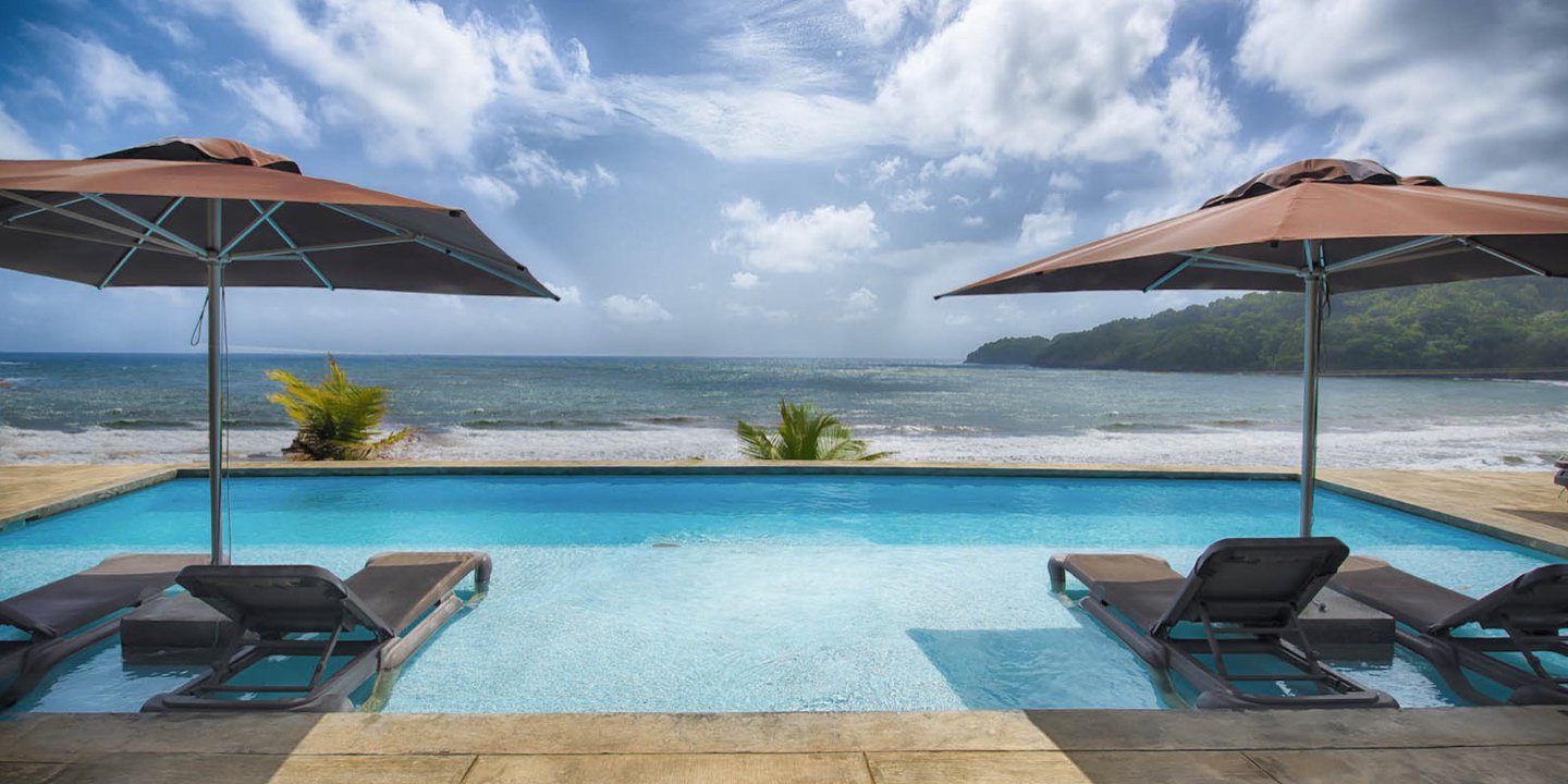 Bel Lavi Villa is an oceanfront 3-bedroom villa with spectacular views of the sea and the mountains. It is 2200 sq. ft. on 2 floors with 2.5 bathrooms. It is located at Pointe Dubique on a cliff overlooking Hodges Bay just outside of Calibishie, on the north-east coast of Dominica. It is about a 20-minute drive from Douglas Charles Airport.  Bel Lavi (Creole for “Beautiful Life”) is in a quiet neighborhood, and you can access the beach by way of a 300-meter path leading from the villa to the beach below.