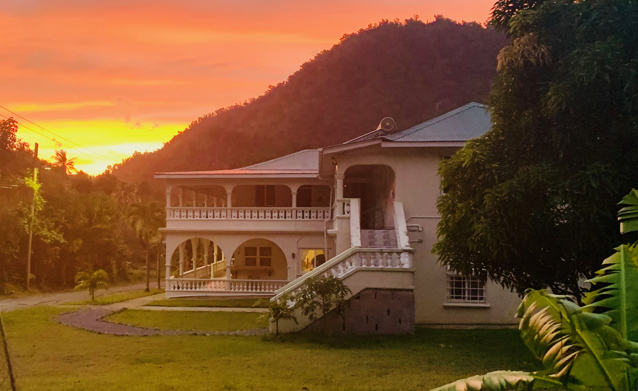 The guesthouse is located in the idyllic Soufriere Valley, just outside of the friendly fishing village of Soufriere, Dominica. Surrounded by lush forest and just a short walk from natural hot and cold springs, the Guesthouse is an amazing base from which to explore the surrounding villages, hiking trails, Caribbean Sea, and the rest of Dominica!